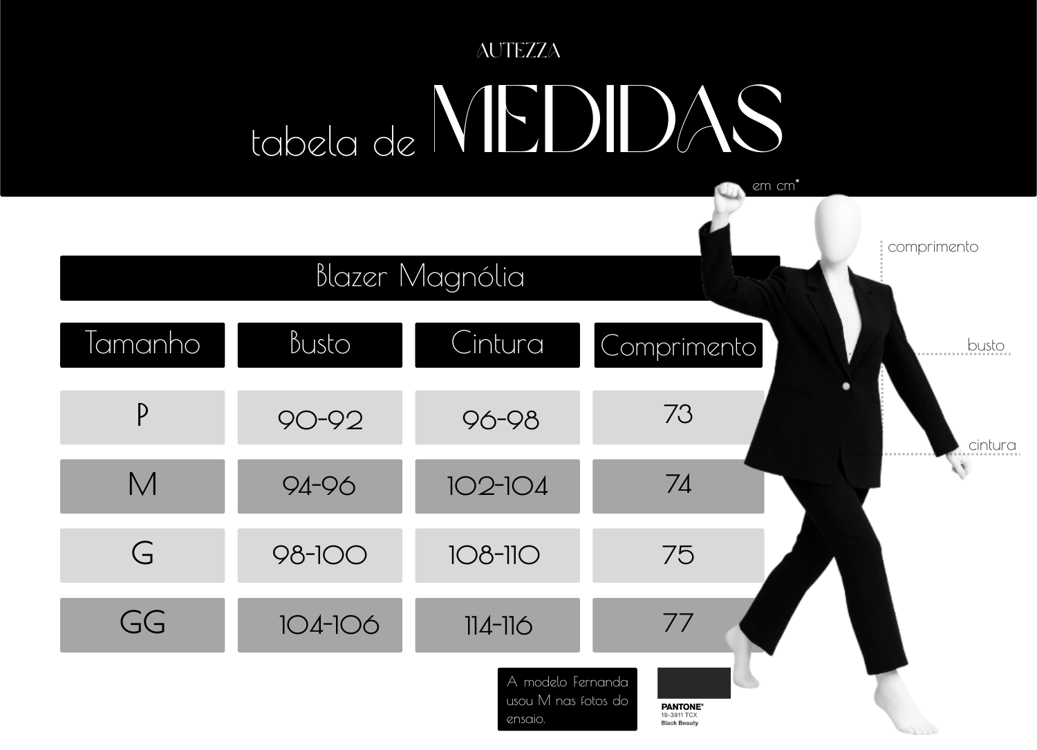 A modelo Fernanda usou o tamanho M nas fotos do ensaio.