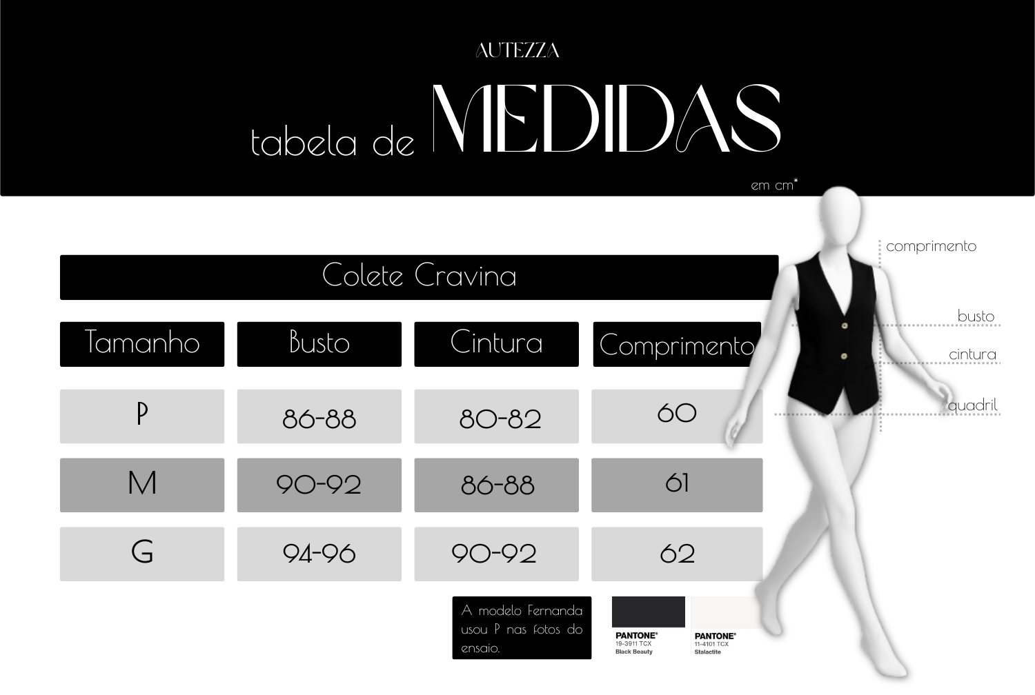 Confeccionado em tecido com 90% poliéster e 10% algodão, o Colete Cravina é a união perfeita entre estrutura e feminilidade!